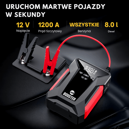 PROMOCJA 21%Rozrusznik Samochodowy 4w1 z kompresorem i latarką